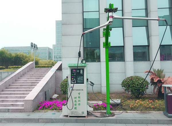 近日,一种新型智能自助洗车机在芜湖市政府亮相。